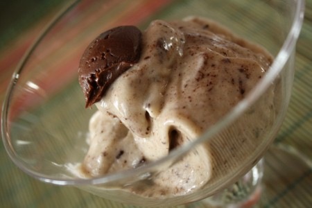Il suffit de passer la banane congelée au robot-culinaire avec la quantité de chocolat de votre choix (ou nature ou avec une autre garniture). «Crème glacée» maison en quelques instants seulement!