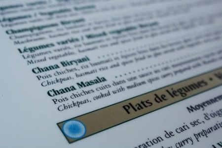 Toutes les options végétariennes sauf une contenaient du beurre de ghee. Je me suis informée au serveur pour savoir si c’était du beurre animal et il m’a répondu que non mais, en vérifiant sur Internet à mon retour, j’ai pu constaté qu’il se trompait. Le beurre de ghee est du beurre régulier clarifié. Il n’y en avait pas dans la liste d’ingrédients de mon Chana Masala mais je ne suis pas certaine d’avoir mangé un repas à 100% végétalien hier.