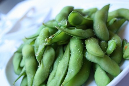 Tous les restaurants japonais devraient offrir des fèves de soya à la fleur de sel! Je n’arrive pas à n’en trouver en cosses à l’épicerie, il n’y a que les fèves décortiquées au rayon des congelés. Si jamais vous en trouvez à Montréal, faites moi signe! Je suis prête à faire 1 heure de métro pour aller en chercher!