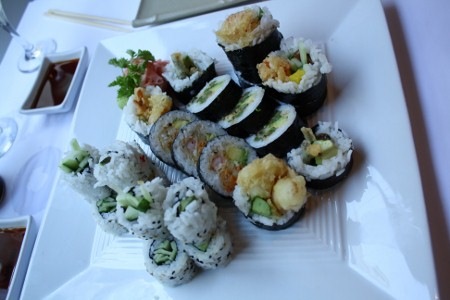 Il n’y a que deux options de makis végétariens sur le menu si vous excluez les rouleaux de concombre et d’avocat. Nous avons donc pris un rouleau de chaque ainsi que les habituels makis d’avocat et de concombre et ma mère a pris un maki Dynamite (crevette tempura).