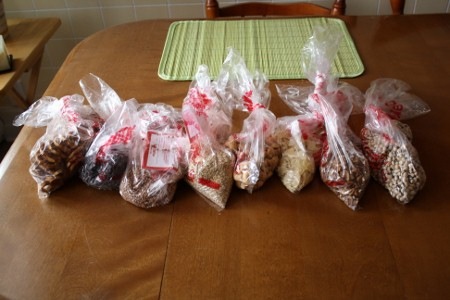 J’ai refait le plein d’amandes effilées, de noix de Cajou, de pacanes en morceaux et de bretzels sans sel en plus de me laisser tenter par des grains de sarrasin, de l’avoine irlandaise, des black eyed peas (j’ai cherché la traduction française mais je ne trouve que des sites Web sur le groupe de musique!?!) et encore plus de pépites de chocolat végétaliennes (j’ai l’intention de faire beaucoup, beaucoup de biscuits!!). Grand total : 15$