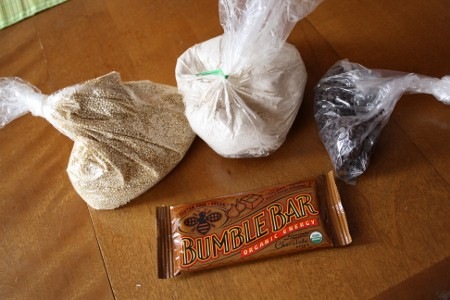 J’ai su me contrôler et ne suis reparti qu’avec du quinoa, des pépites de chocolat (sans produits laitiers), de la farine d’épeautre à grains entiers et une barre granola végétalienne (ne vous laissez pas berner par l’abeille). Malheureusement, il n’y avait plus de Puffins au beurre d’arachide. 😦 Total : 9$
