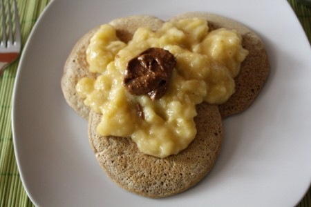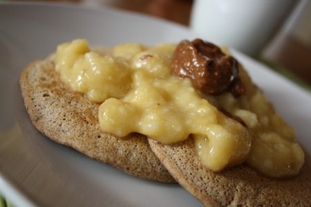 Servis avec une purée de banane et une touche de beurre d’arachide au chocolat, divin!
