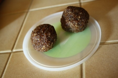Avant de partir, j’ai mangé deux truffes aux dattes et aux noix.