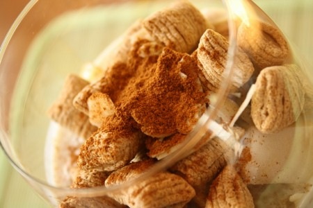 Avec des morceaux de poire et de kiwi, des céréales à l’avoine Quaker, des amandes effilées et de la cannelle, c’était tout de même très bon.