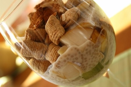 Je ne sais pas ce qu’il a mon pouding de soya, parfois il prend bien et parfois, il reste super liquide… La prochaine fois, j’essaierai d’ajouter de la gomme de guar et de xanthane.