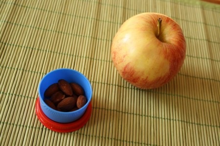 En avant-midi, j’ai mangé une pomme Gala et des amandes.