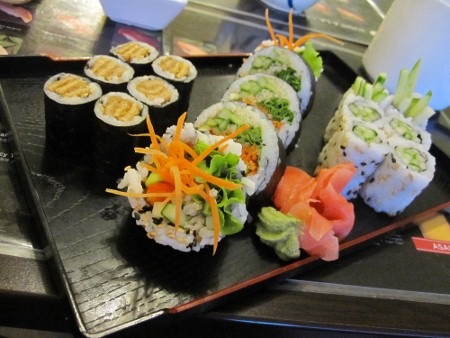 Pour ma part, mon choix s’est arrêté sur un rouleau de concombre, un rouleau au tofu japonais (sucré!) et un rouleau végétarien sans mayo.