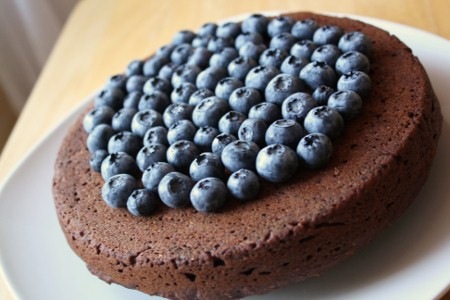 Et pour dessert, un morceau de gâteau au chocolat et aux bleuets. 🙂