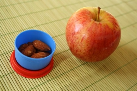 En avant-midi, j’ai croqué dans une pomme Gala et des amandes rôties.