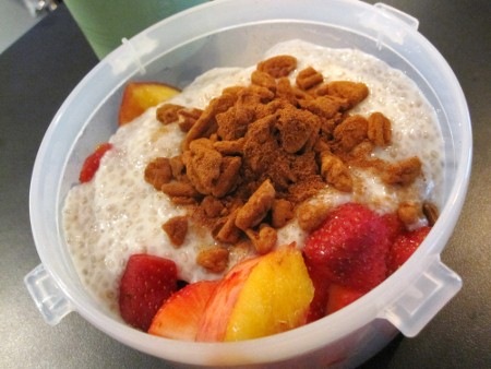 Je crois que les beaux jours du pouding de soya tirent à leur fin… C’était délicieux lors des chauds matins d’été mais c’est un peu trop frais pour les nuits automnales… Le mélange fraises, pêche, pouding, pacanes et cannelle était bon par contre!