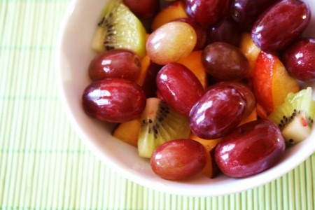 En guise de dessert, je me suis fait une petite salade de fruits : kiwi, pêche et raisins rouges.