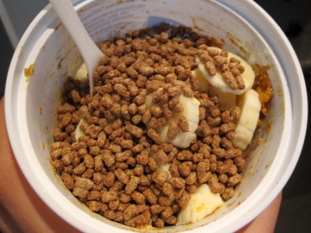 J’aurais aimé pourvoir me fermer les yeux et déguster chaque bouchée comme si c’était la dernière mais, comme j’étais au boulot, j’avalais mon muesli en courant à gauche et à droite pour préparer le show. Bah, c’était délicieux quand même! 🙂