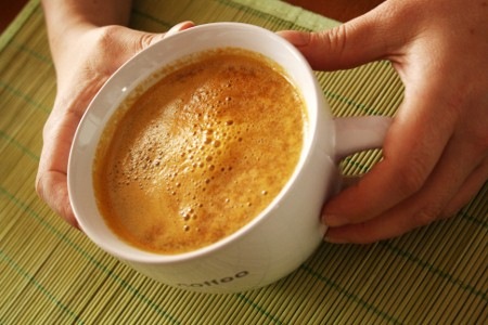Versez le lait chaud dans une grande tasse et ajoutez le café chaud préparé à l’étape 1.