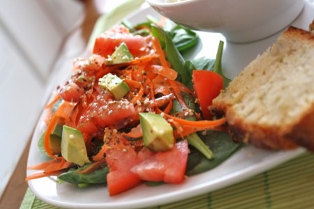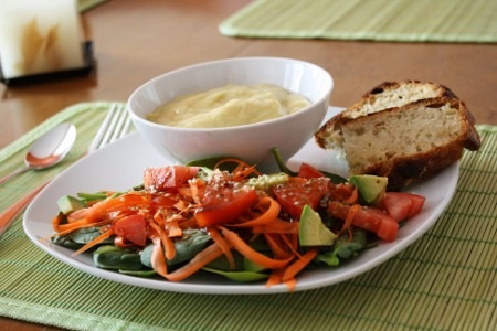…tu n’as qu’une envie pour dîner : ton super pain à l’huile d’olive et aux herbes. Essaye tout de même de trouver quelque chose pour l’accompagner, juste pour avoir bonne conscience. Un potage et une salade par exemple?