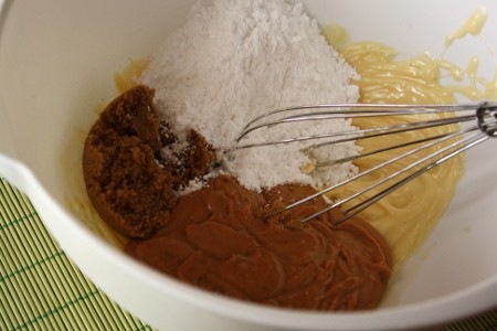1) Dans un grand bol, crémez votre faux-beurre ou votre margarine. Ajoutez le beurre d’arachide, le sucre à glacer, la cassonade et la vanille et bien mélanger.