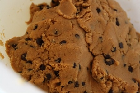 3) Intégrez les ingrédients secs au mélange de beurre d’arachide. Ajoutez les pépites de chocolat et le lait au besoin pour former une boule de pâte. Réfrigérez 30 minutes.