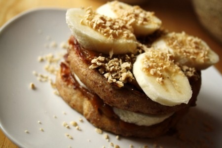 Si vous voulez faire comme moi, déposez un muffin anglais dans une assiette, tartinez-le de beurre de citrouille, ajoutez des rondelles de bananes, remettez un autre muffin anglais, tartinez de plus de beurre de citrouille et déposez les dernières rondelles de banane. Finissez votre assiette en saupoudrant des cristaux de beurre d’érable.