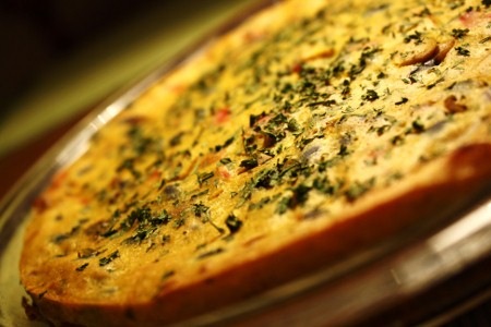 J’ai repris la recette de mini-quiches sans oeuf que j’avais fait pour mon brunch d’anniversaire en lui apportant quelques modifications. C’était très bon mais, la prochaine fois, j’essaierai j’ajouter du tofu mou (pas soyeux) pour épaissir le mélange comme dans ma recette de gâteau-mousse à l’érable. La quiche est meilleure le jour même que réchauffée.