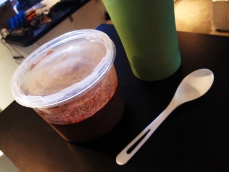 Déjeuner : muesli banane, cacao et beurre d’arachide.