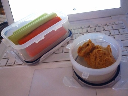 Au cas où vous ne l’auriez pas remarqué au cours de la dernière semaine, ça ne me fait rien de manger la même collation 7 jours de suite. Ça m’évite de me casser la tête et j’ai une portion de légumes d’avaler avant 8h30 le matin (je mange généralement ma collation vers 8h puisque je déjeune en arrivant au travail vers 4h45-5h)