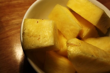 Dessert : morceaux d’ananas et biscuits banane et avocat.