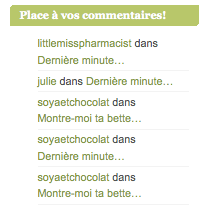 Encore une fois dans la colonne de droite, vous trouverez un onglet vous permettant de voir les 5 derniers commentaires qui ont été laissés sur le blogue.