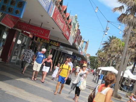 Maisons huppées, plage, restos, magasins, touristes et faune urbaine, je me serais crue à Santa Monica, un quartier prisé de Los Angeles.