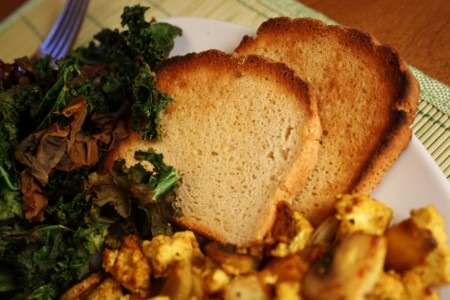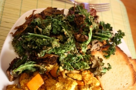 Servez avec les accompagnements de votre choix. Chips de chou kale et pain sans gluten pour moi!