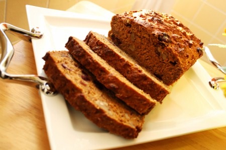 Ce pain est très dense, il ne plaira pas à ceux qui préfère les textures de type «gâteaux». Par contre, pour ceux qui, comme moi, aime un bon pain lourd, plein de morceaux de fruits et de noix, vous serez ravis! Il est sucré juste à point grâce à la purée de dattes et aux canneberges séchées.