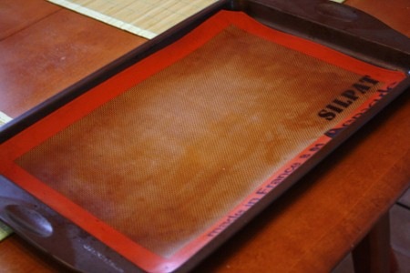 Je vous recommande fortement d’investir dans un Silpat. C’est un petit investissement (30$ chez Ares) mais, à la longue, c’est plus économique que du papier parchemin. C’est aussi beaucoup mieux pour l’environnement!