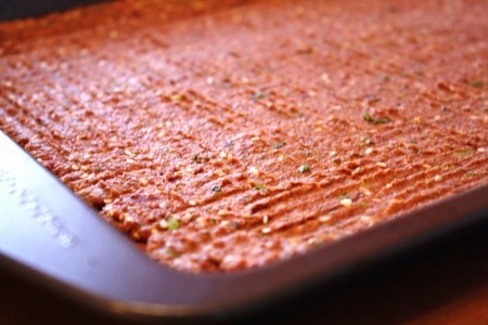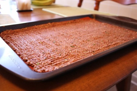 Votre «pain» peut avoir l’épaisseur de votre choix mais essayez quand même de viser les 3-4 millimètres d’épaisseur sinon ça va vous prendre des heures pour le «déshydrater».