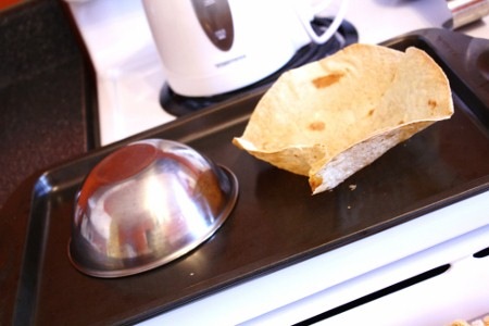 Préchauffez votre four à 350. Déposez un bol à l’envers sur une plaque de cuisson. Déposez un tortillas de riz dessus et utilisez vos mains pour lui donner la forme du bol. Enfournez pour 10 minutes.