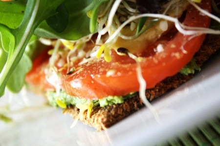 Étagez le reste des ingrédients. Finissez avec la deuxième tranche de pain.