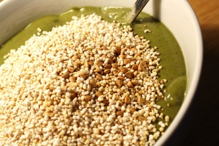 1. Mettre les 5 premiers ingrédients dans l’ordre cité plus haut dans le mélangeur (blender). Actionnez jusqu’à homogénéité.