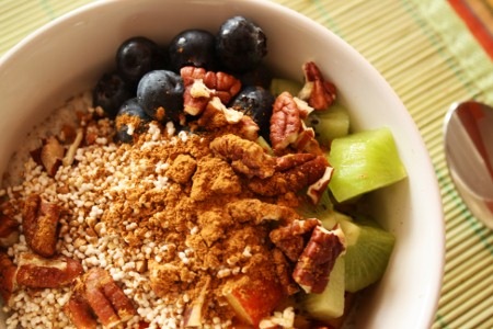 J’ai acheté des graines de chia finalement, mais maintenant il me manque la gomme de xanthane et le tofu soyeux. Parfois, je fais un poudding en mélangeant des graines, du lait et du nectar d’agave le soir, et je déjeune avec ça le lendemain matin avec des fruits. Rafraîchissant! J’aime beaucoup le petit croquant du chia.