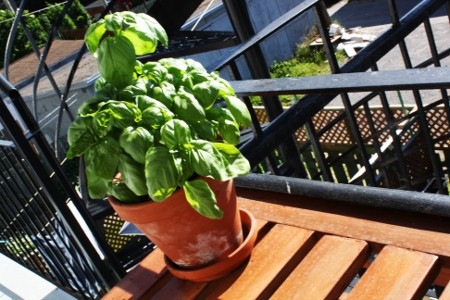 Un dernier coup d’oeil au plant de basilic, il ne sera probablement pas parmi nous pour très longtemps… J’ai plein de belles qualités mais, le jardinage, ce n’est pas mon truc… 😦 Trop d’eau, pas assez d’eau, trop de soleil, pas assez de soleil, bref, trop compliqué.