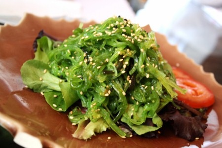 Le repas s’est poursuivi avec une salade d’algues (elle est très grosse, vous pouvez facilement la partager à deux). J’adore les salades d’algues! Il est temps que je me déniaise et que j’en fasse à la maison…