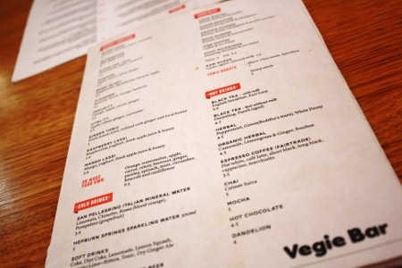 Parlant de menu, ce dernier est incroyablement facile à parcourir grâce aux petits cercles qui indiquent si le plat est végétalien, peut-être modifié pour être végétalien, sans gluten ou cru. Il n’y a que deux choix 100% cru sur le menu mais les options vegan abondent.