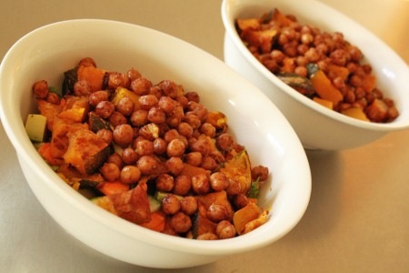 En deuxième position, mon homme apprécie grandement les pois chiches et la citrouille rôtis avec de la cannelle et une vinaigrette balsamique à l’érable.