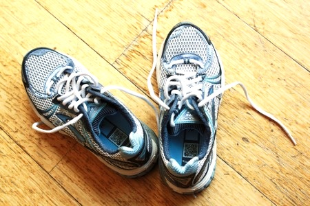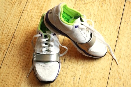 Deuxièmement, afin de garder mes espadrilles de course en bon état pour courir (au prix qu’elles m’ont coûté, j’aimerais les garder longtemps!), je me suis procurée une paire d’espadrille multi-sports pour le gym. Cette fois-ci, mes vieilles espadrilles sont vraiment trop vieilles pour remplir cette fonction. La semelle est tellement à plat que j’ai l’impression de porter un point trop grand et le dessous des orteils me brûle après une séance sur le cross trainer. Pas bon, pas bon du tout.
