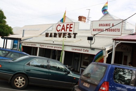 Lorsque nous avions regardé sur le Web pour trouver des restos intéressants à Daylesford (croyez-moi, quand vous tenter de combler une végétalienne et un végétarien-sans-gluten, faire quelques recherches à l’avance n’est pas de trop), le Harvest Café nous avait séduit par son menu entièrement végétarien.