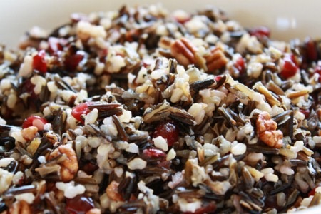 recette inspirée du Wild Rice with Caramellized Shallots, Cranberries and Pecans de Eat Live Run