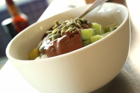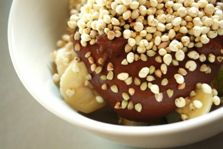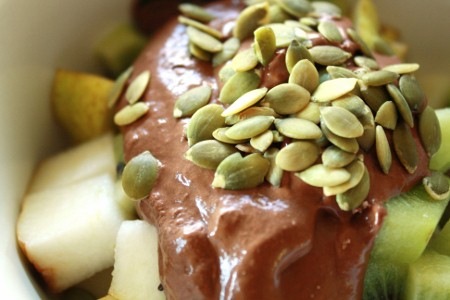 Si vous me lisiez l’été dernier, vous vous rappelez peut-être mon élan de créativité avec la poudre de protéine au chocolat de Vega. Même si j’adore la compagnie et les livres de Brendan Brazier, je suis incapable d’avaler leurs suppléments en poudre. Je ne sais pas si c’est le stévia ou les algues mais il y a toujours un goût très amer qui me rebute dans les smoothies.