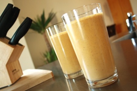 Cette fois-ci, j’avais le goût de faire différent. Selon vos suggestions, j’ai décidé d’amener des smoothies avec moi lorsque je travaille de 16h à 20h au gym. Je ne peux pas manger au comptoir mais boire est tout à fait acceptable. Comme j’aime la variété, Steven devra changer de son habituel smoothie à l’orange deux fois par semaine. 😉 Heureusement, il a beaucoup aimé ma dernière création!