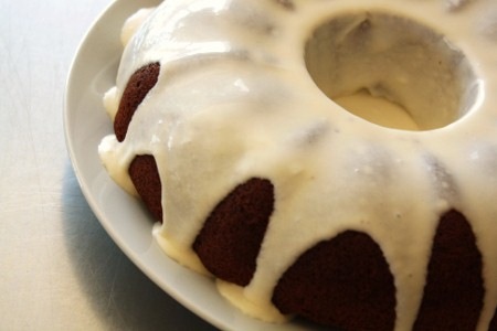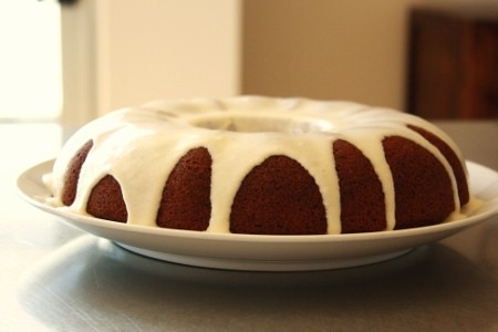 Laissez refroidir complètement dans le moule avant de le démouler. Le gâteau doit être complètement refroidi avant de le glacer donc je l’ai fait la veille et ne l’ai crémé que le lendemain. Il était toujours aussi frais et moelleux après une nuit sur le comptoir recouvert de papier d’aluminium (j’ai laissé une petite ouverture)!