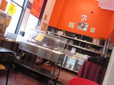 Il s’agit du resto OM vegatarian, situé en plein centre-ville de Melbourne. Il faut savoir où il se trouve car il n’y a qu’une minuscule pancarte et il faut monter au deuxième étage d’un édifice à bureaux pour l’atteindre.