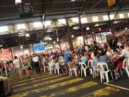 Le Suzuki Night Market se tient tous les mercredis de la saison estivale à Melbourne. Durant le jour, le marché déborde de fruits, légumes, viandes, fromages et autres produits alors que, le soir, les étales font place aux restaurateurs en tout genre.