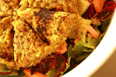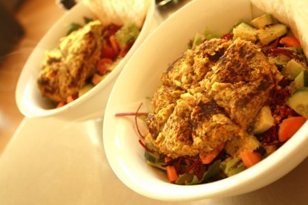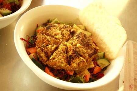 J’ai simplement ajouté un peu d’huile d’olive en guise de vinaigrette puisque les burgers étaient très épicés.