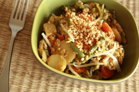 Remuez pour tout réchauffer. Ajoutez les fèves germées et remuez à nouveau.